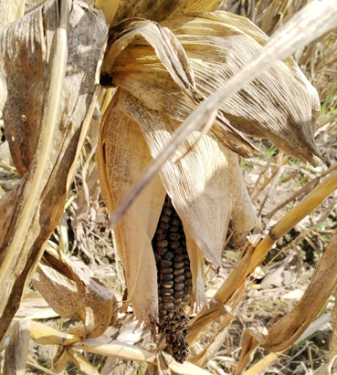 Deben estar bien selladas las hojas que cubren la mazorca, sin enseñar los dientes (grano) para evitar que entre la plaga, el agua o que animales como las aves se lo coman.